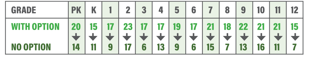 CHART SHOWS ENROLLMENT NUMBERS WITH AND WITHOUT OPTION STUDENTS